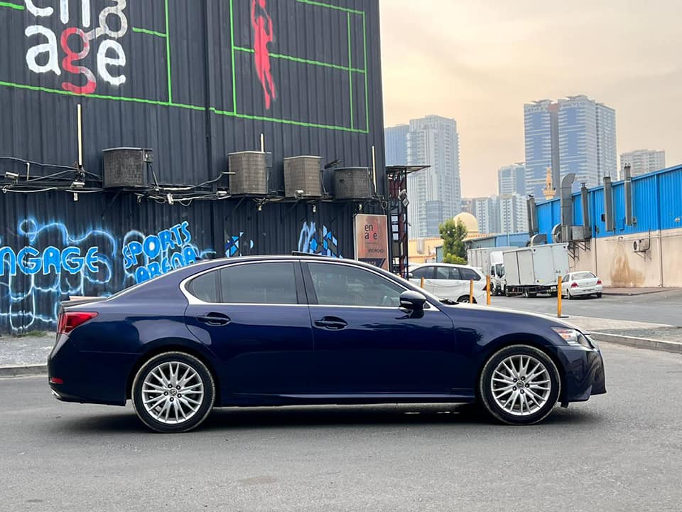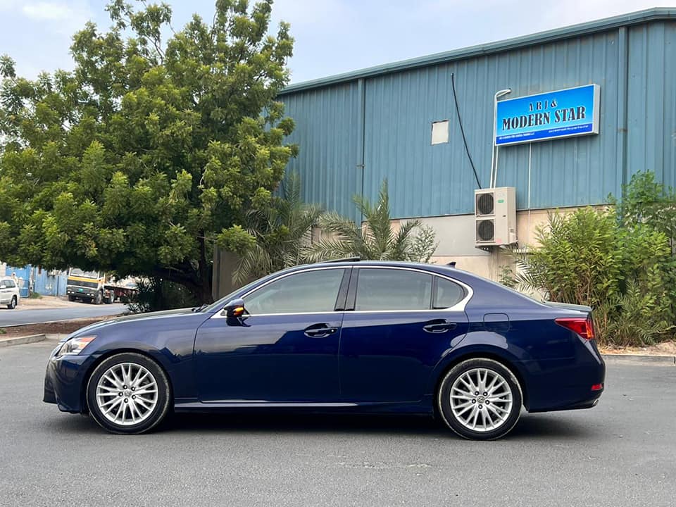 Lexus Gs 2013 -Sun roof : No – Model : 2013 – Milage : 153000 – Door : 4 -Key less entry : Yes -Screen : No -Push button : Yes – Body Type : Sedan – Exterior Color. : Blue – Interior Color : black -Leather seats : Yes – Power seats : Yes -No of seats : 4 seaters – No of Cylinders : 6V – Engine Capacity : 3.5L – Transmissions Type : Auto Transmission – Warranty : Does not apply – Regional Specs : American Specs – Body Condition : perfect in & out – Technical Features : RwD – Fuel Type : Gasoline -Cruise control : Yes – Bluetooth : Yes – Aux : Yes -USB port : Yes – Rear AC : Yes -Multi Media steering : Yes – Rear view Camera : No -Radar : Yes – Blind Spot : Yes -Lan Keep : Yes -Tire pressure sensor : Yes -Alloy Wheels : Yes – Tires : New – Battery : New