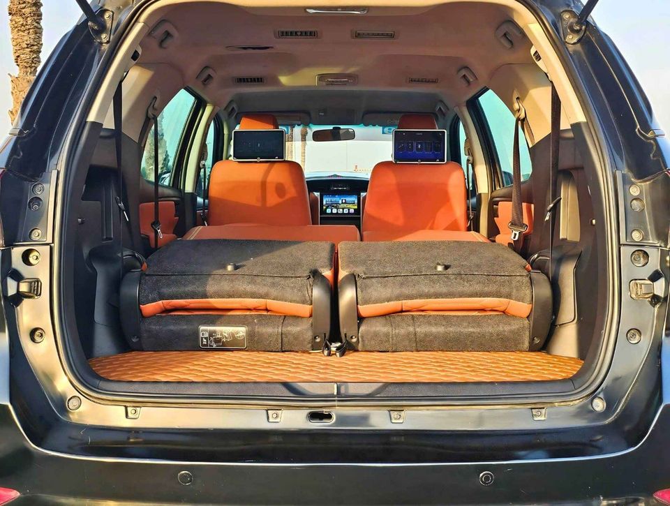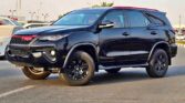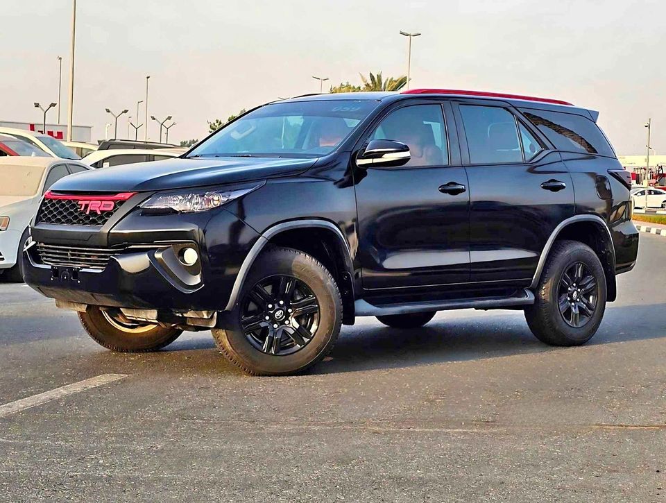 This 2017 Toyota Fortuner EXR Black Edition stands out with its stylish black edition and white roof. It's a full-option model equipped with leather seats, DVD, and a rear camera. With 196,923 miles on the odometer, it offers great features and practicality for both city and off-road driving.
